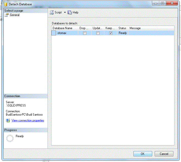 Detach Database Maksudnya, untuk melepas keterikatan file database terhadap Engine SQL Server nya…